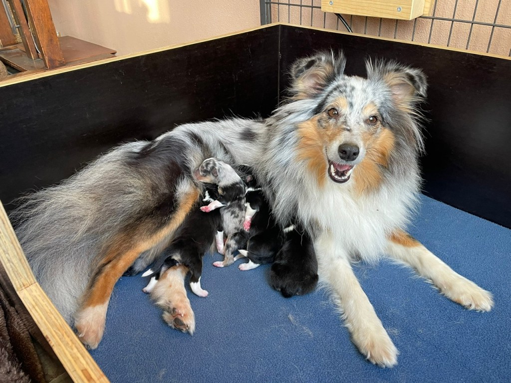 Derde nestje Nova 15-januari 2023 Nova-Fay-Lo (Nova) Filhaasfootprints en Middog’s Jack Sparrow (Jack) Sheltie Kennel Marmorea’s Shelter Nova heeft 5 pups gekregen, 2 blue merle reutjes, 1 tricolor reutje en 2 tricolor teefjes. Home Dit delen: Klik om te delen op Facebook (Opent in een nieuw venster) Facebook Vind-ik-leuk Aan het laden...