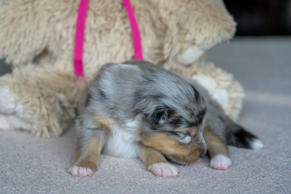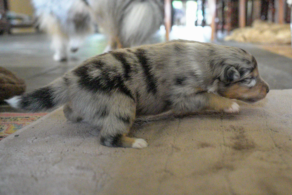 Pups Molly 2 weken oud Bij sommige pups zijn de oogjes open en een aantal lopen al waggelend door de bak. Dit delen: Klik om te delen op Facebook (Opent in een nieuw venster) Facebook Vind-ik-leuk Aan het laden...