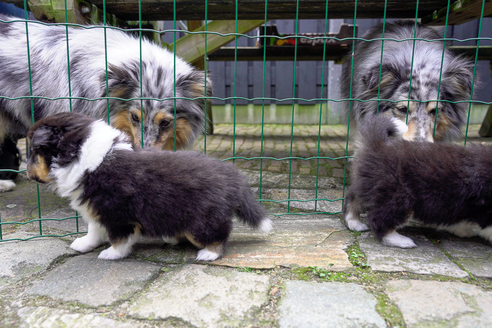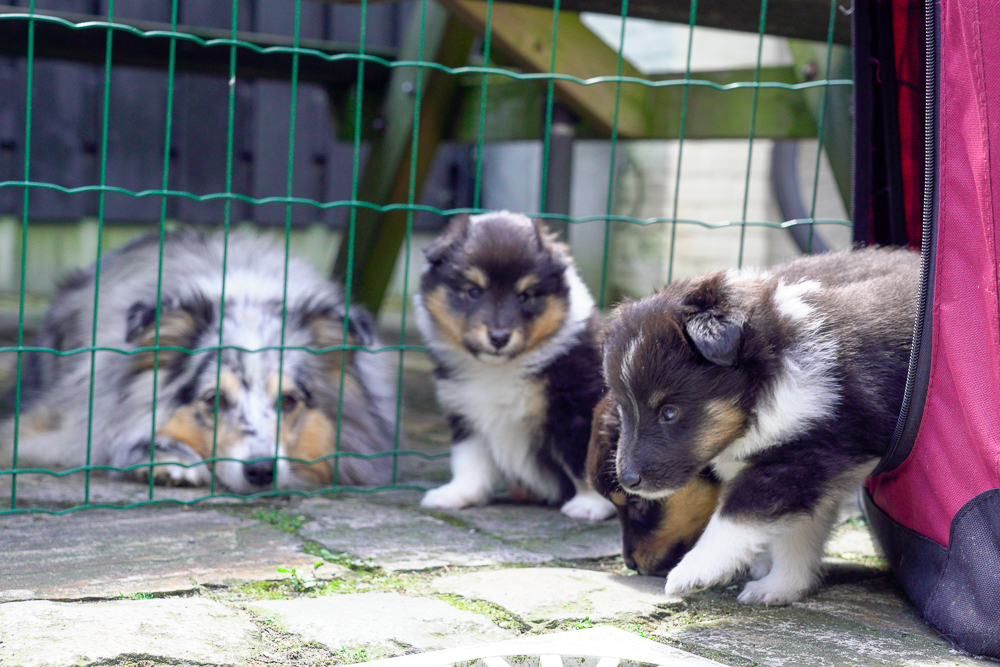Voor de eerste keer naar buiten onder toeziend oog van de (groot)moeders