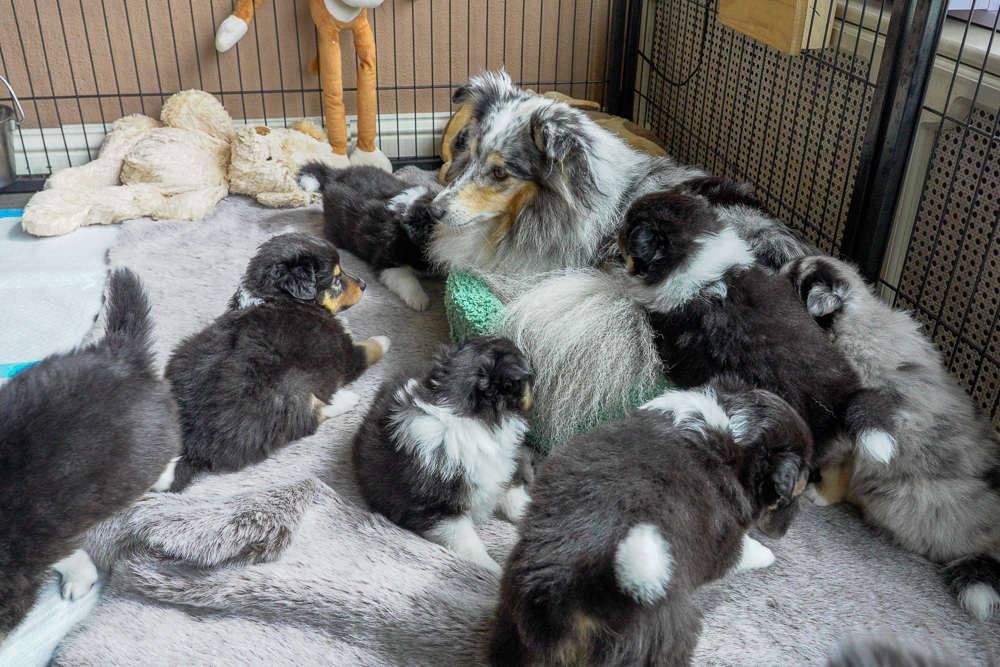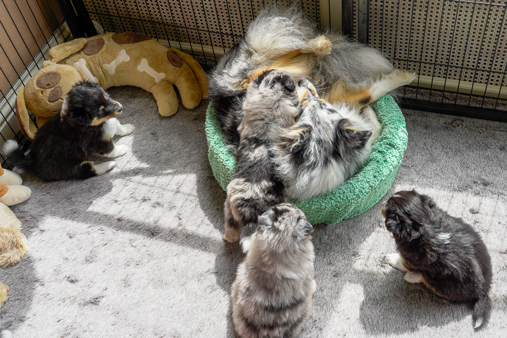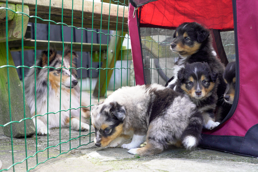 Voor de eerste keer naar buiten onder toeziend oog van de (groot)moeders