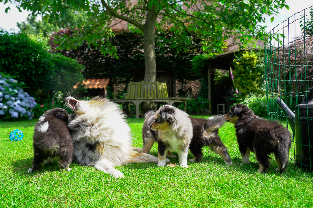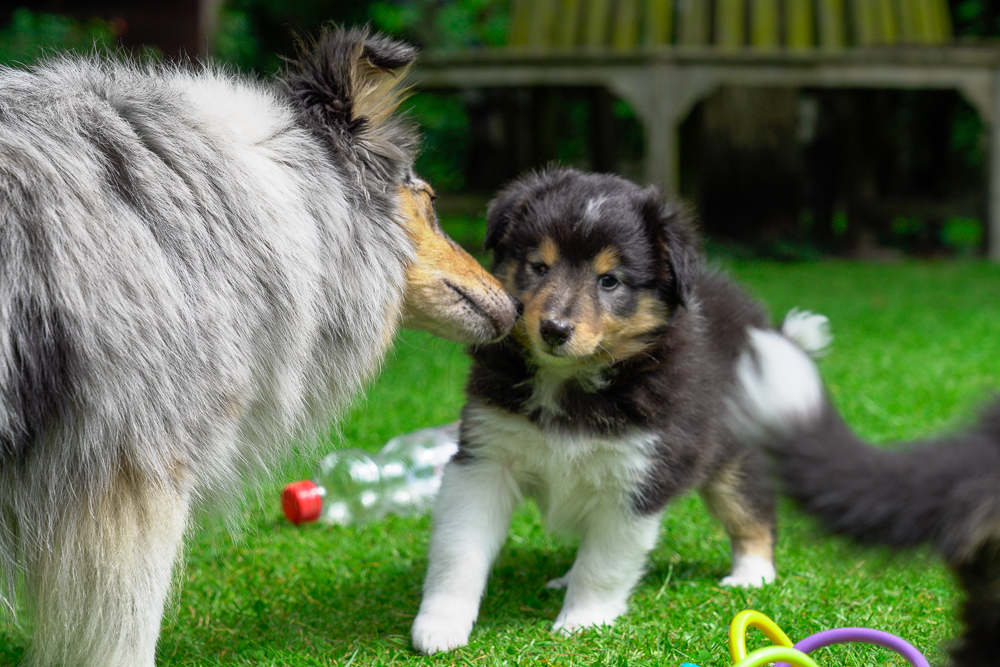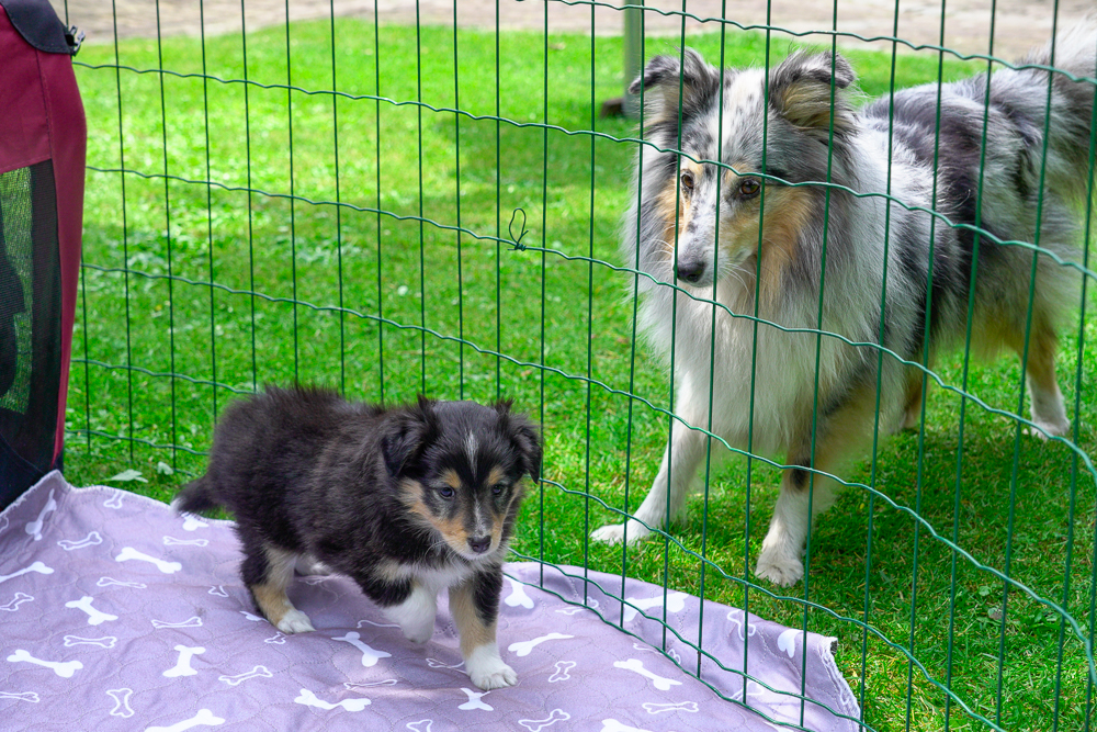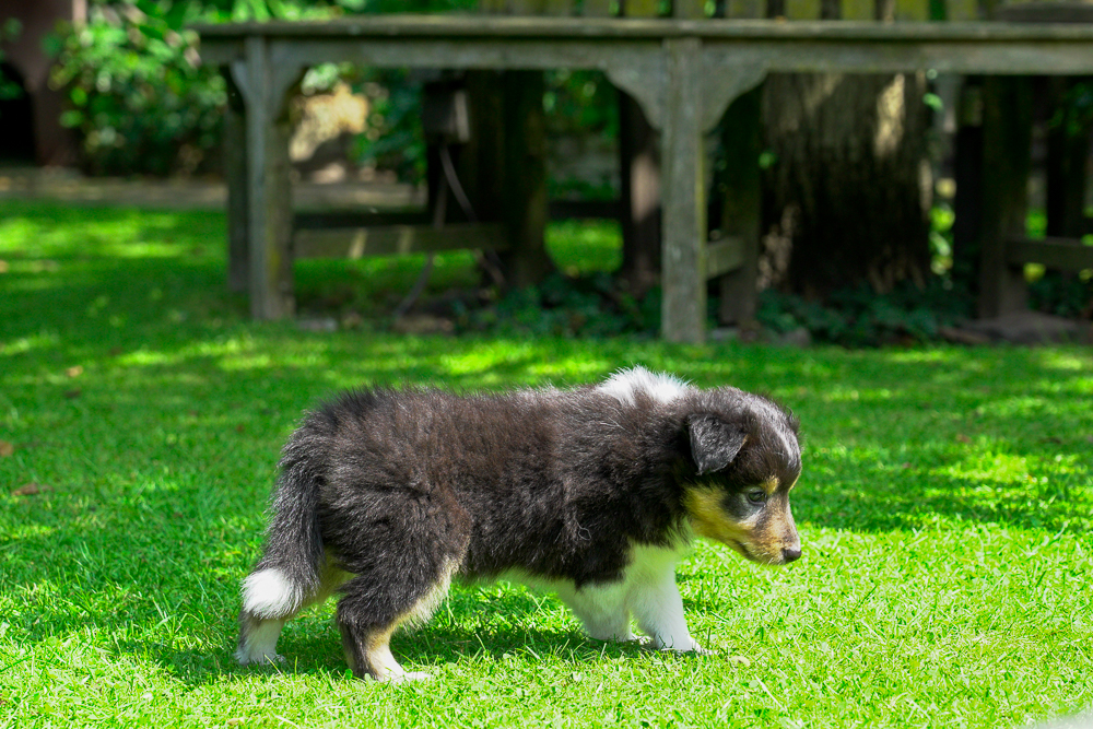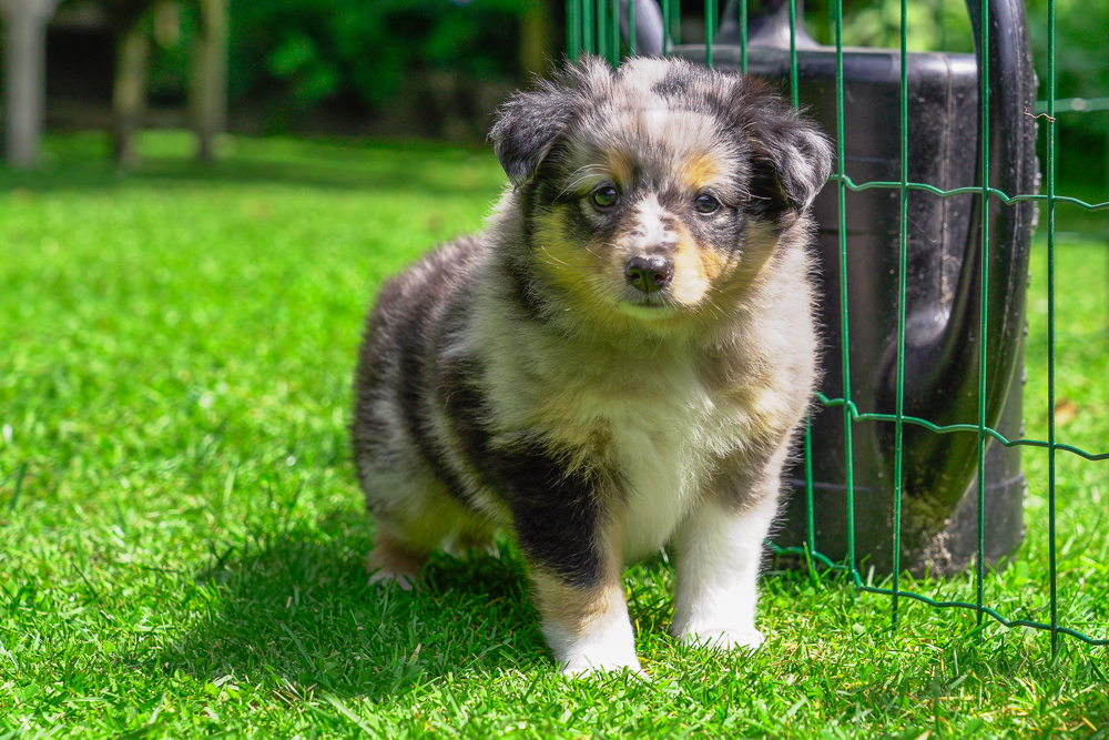 Pups Nova 6 weken oud Voor de eerste keer in de tuin op het gras Dit delen: Klik om te delen op Facebook (Opent in een nieuw venster) Facebook Vind-ik-leuk Aan het laden...