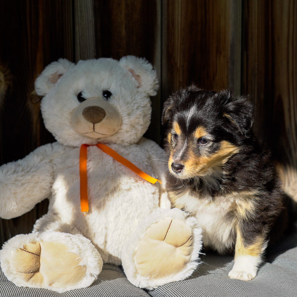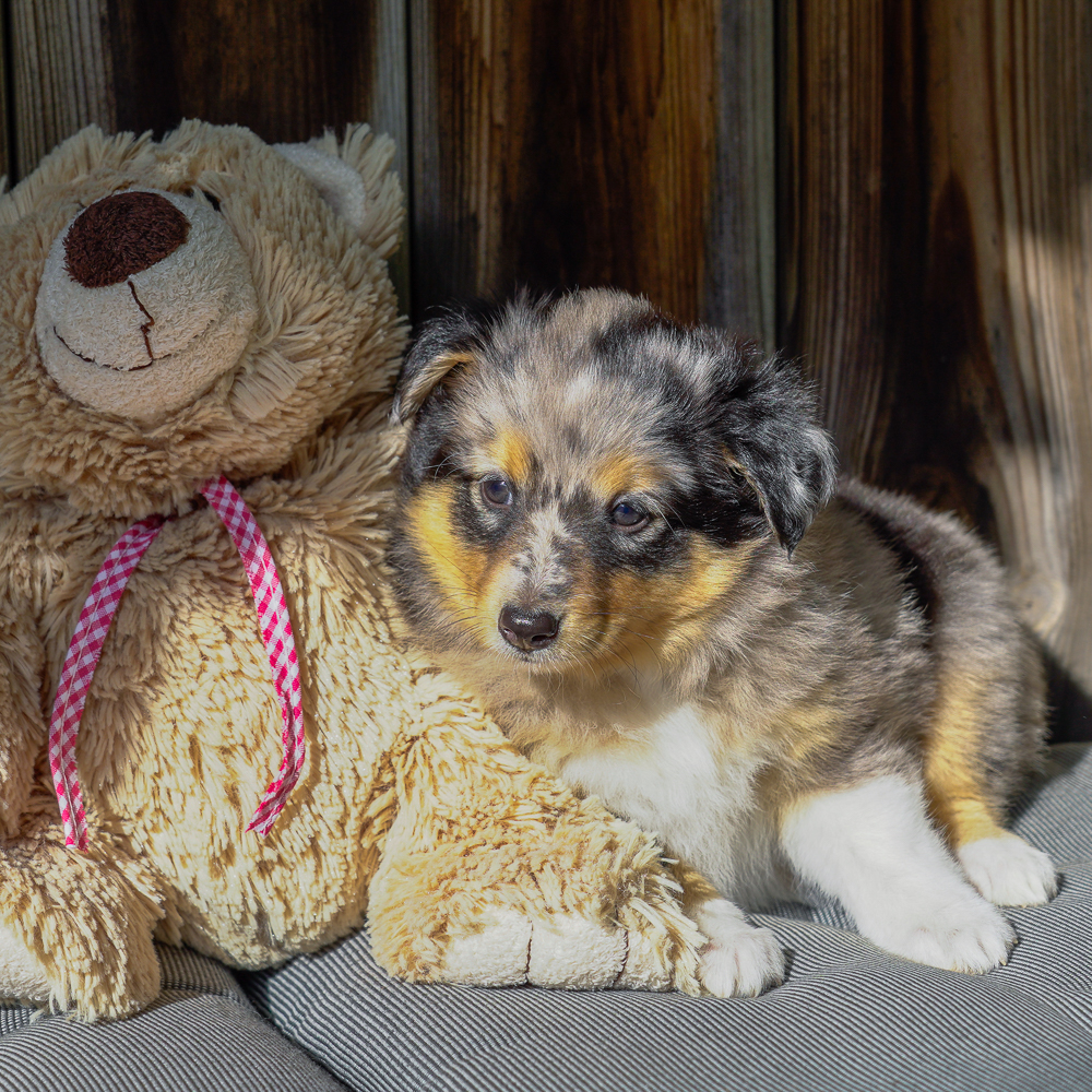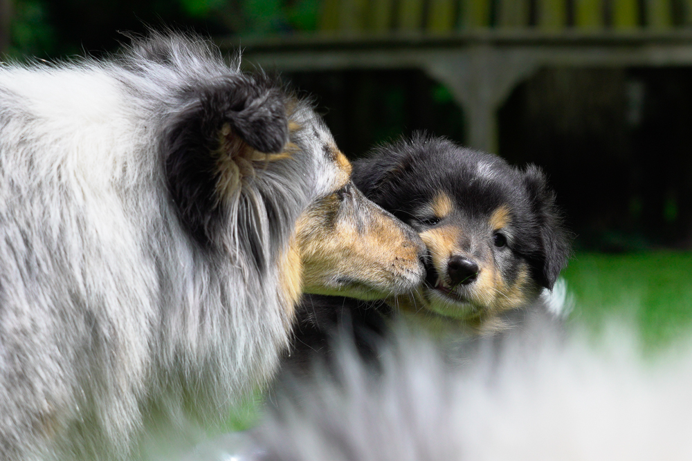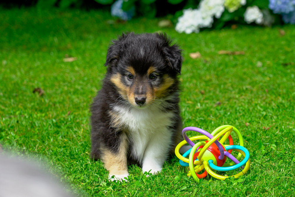 Pups Nova 6 weken oud Voor de eerste keer in de tuin op het gras Dit delen: Klik om te delen op Facebook (Opent in een nieuw venster) Facebook Vind-ik-leuk Aan het laden...
